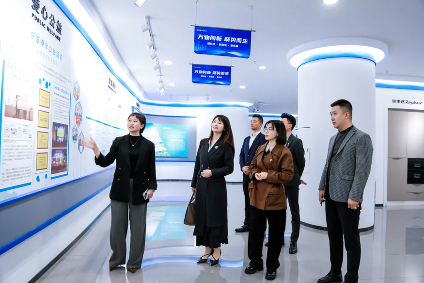 合肥荣事达水工业设备有限责任公司健康事业部总经理张文静陪同领导一行参观智慧水世界展厅。领导一行深入了解公司发展历程、公益事业成果及党建引领下的企业文化,全面考察全屋智慧净水、管道直饮水、校园与单位直饮水等全场景布局与技术成果,实地观摩了AI健康舱项目,为后续深化协同合作、共拓健康服务新赛道筑牢基础。