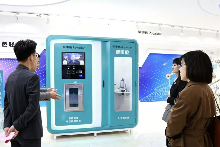 会上,荣事达水工业公司AI健康舱项目发起人王一烜、刘俊良共同启动项目,项目负责人管仲对AI健康舱进行了介绍。该项目定位为社区数智化健康服务站,采用双舱一体设计,融合AI中医云诊与健康饮水功能,搭载“四诊合一”技术,可快速完成健康辨识,适配六大公共场景,实现24小时无人值守运营,为居民提供一站式健康服务。